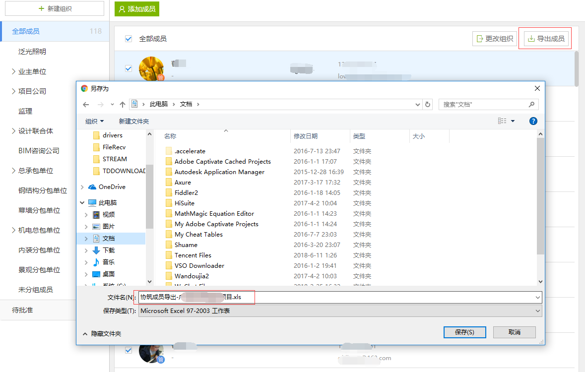 5. 新增导出成员的功能,可以将成员批量选中导出成Excel文件,在其他空间可以一键导入.